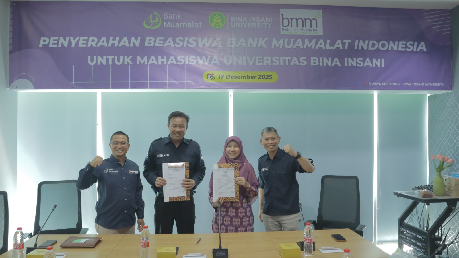 Kegiatan ini dihadiri oleh jajaran pimpinan Bina Insani University, perwakilan Baitul Maal Muamalat, serta mahasiswa penerima beasiswa. Program ini menjadi salah satu upaya mendorong mahasiswa agar terus berprestasi dan mengembangkan potensi akademik maupun nonakademik.