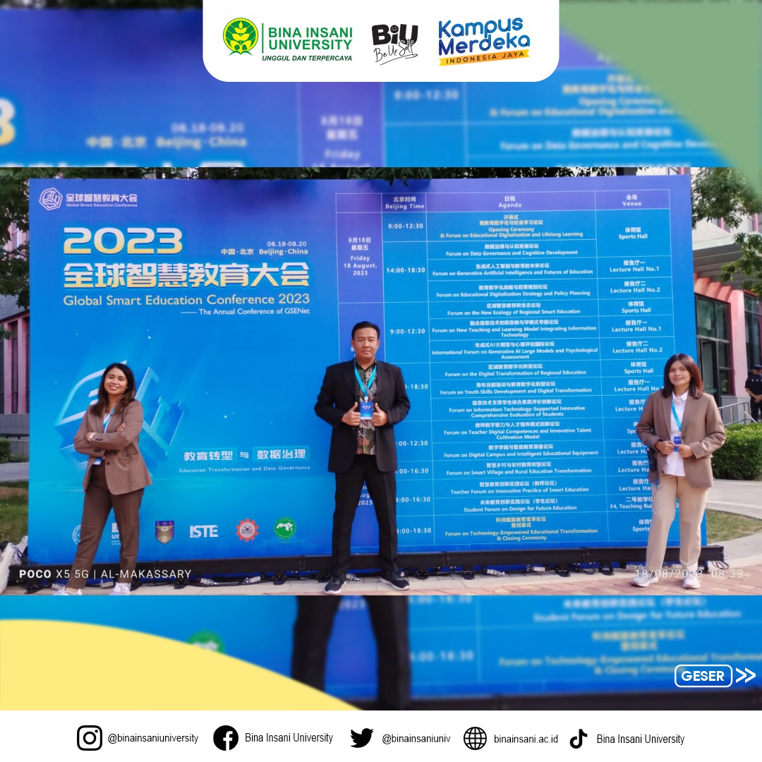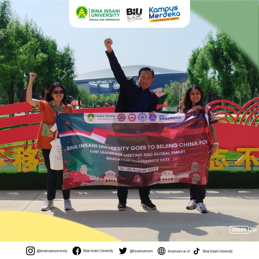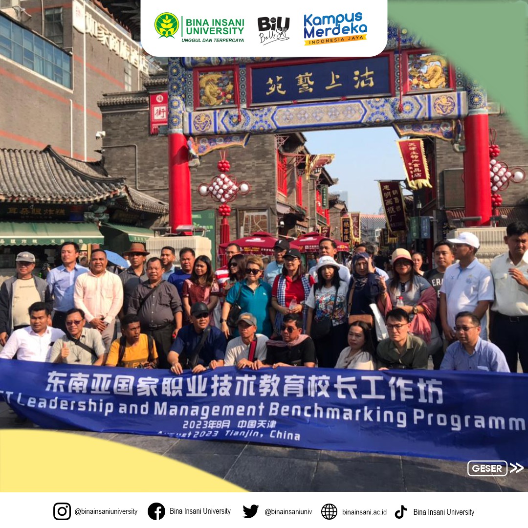 Beijing City, People Republic Of China, 14-20 Agustus 2023 – Bina Insani University dengan bangga mengumumkan keberhasilannya dalam melaksanakan Program International TVET Leadership and Management Benchmarking Programme in Education in Southeast Asia Countries and Global Smart Education Conference di Beijing, People Republik Of China. Kegiatan yang dilaksanakan pada tanggal 14-20 Agustus ini merupakan hasil kerjasama dengan berbagai pihak, termasuk Beijing Normal University (BNU), China Education Association for International Exchange (CEAIE), SEAMEO Regional Centre for Technical Education Development, Tianjin Municipal Education Commission (TLIVTC), serta eksekutif organizer, yaitu Tianjin Light Industry Vocational Technical College (TLIVTC), dan UNESCO Chair on AIED at Beijing Normal University.