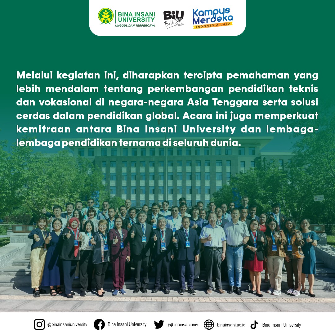 Melalui kegiatan ini, diharapkan tercipta pemahaman yang lebih mendalam tentang perkembangan pendidikan teknis dan vokasional di negara-negara Asia Tenggara serta solusi cerdas dalam pendidikan global. Acara ini juga memperkuat kemitraan antara Bina Insani University dan lembaga-lembaga pendidikan ternama di seluruh dunia.