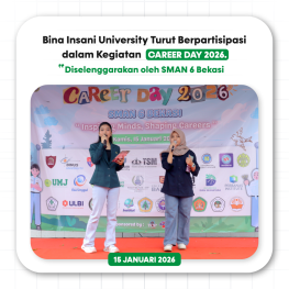 Jl. Siliwangi No. 6 Sepanjang Jaya, Kec. Rawa Lumbu, Kota Bekasi 17114 View mapBekasi, 15 Januari 2026 – Bina Insani University hadir dan berpartisipasi dalam kegiatan Career Day SMAN 6 Kota Bekasi. Kegiatan ini menjadi momentum penting bagi siswa untuk mendapatkan informasi seputar dunia perkuliahan dan perencanaan karier setelah lulus dari jenjang pendidikan menengah.