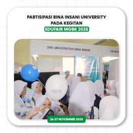 Bekasi, 28 Novenber 2025 — Bina Insani University turut berpartisipasi dalam kegiatan Edufair MGBK SMA Kota Bekasi yang diselenggarakan di Asrama Haji selama dua hari. Kegiatan ini menjadi wadah bagi siswa SMA untuk memperoleh informasi seputar perguruan tinggi serta mengenal berbagai pilihan pendidikan lanjutan.   Partisipasi Bina Insani University mendapat