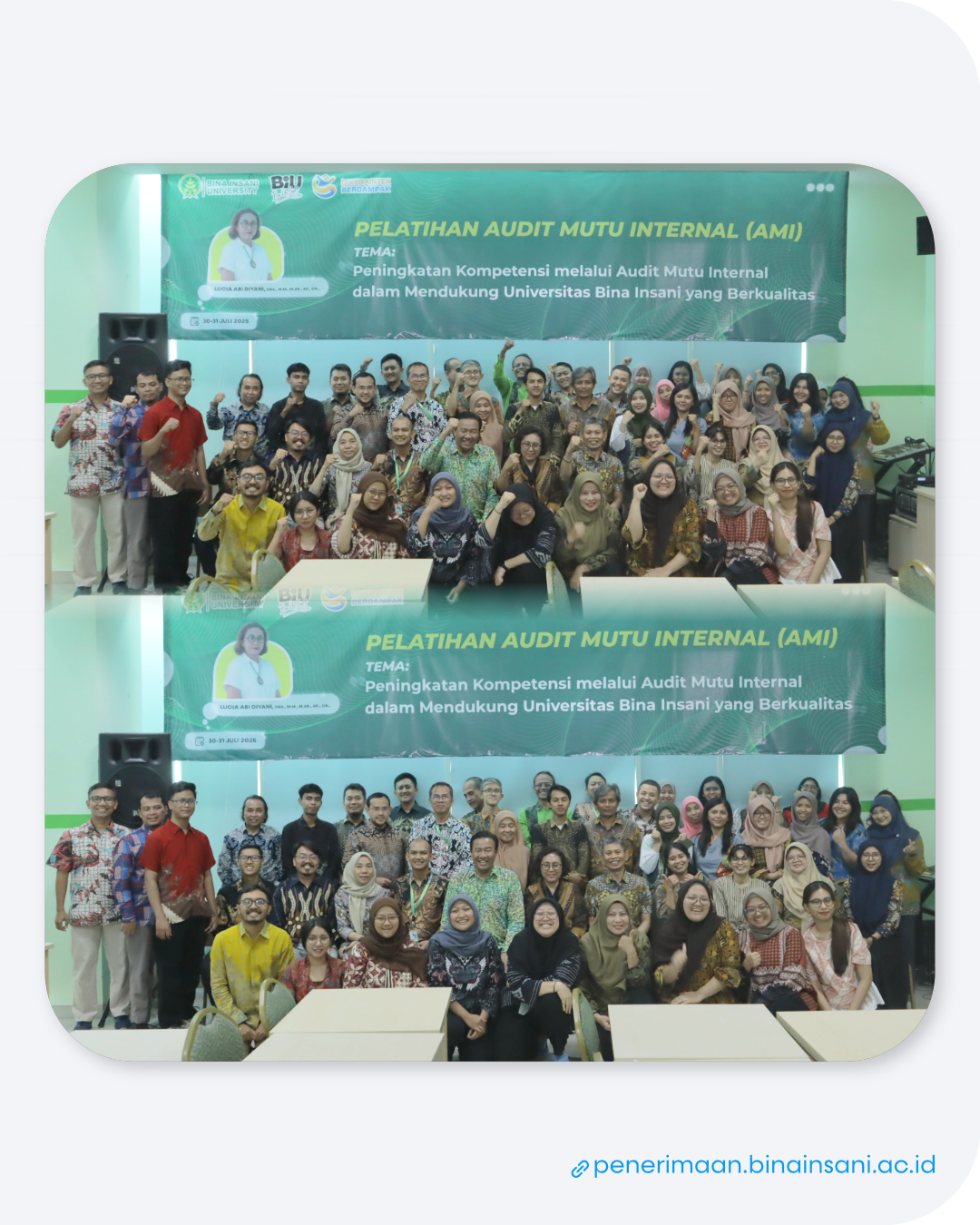 Universitas Bina Insani percaya bahwa kualitas tidak dibangun dalam semalam, namun melalui proses yang terus ditingkatkan. Dengan semangat Bigger, Better, Higher, mari kita bersama-sama membangun institusi yang lebih kuat secara mutu dan berdampak nyata bagi masyarakat.