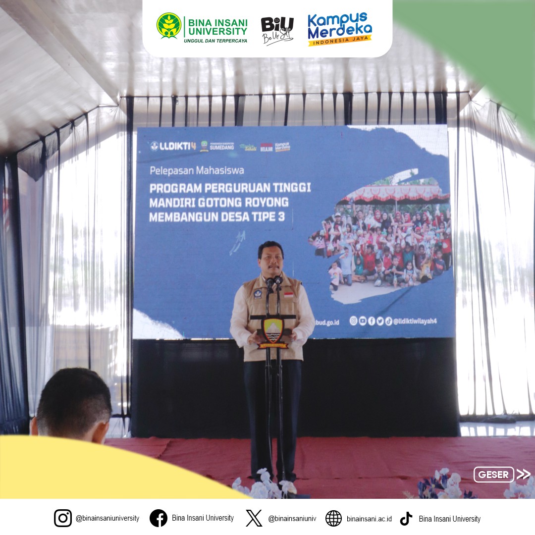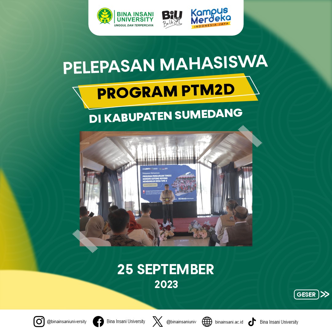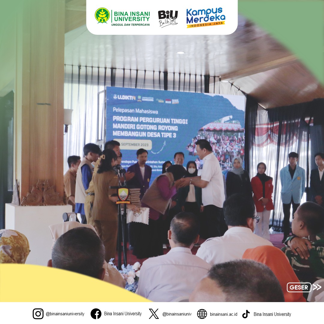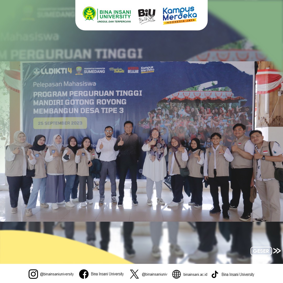 Pada Senin, 25 September kemarin, Universitas Bina Insani turut ikut serta dalam kegiatan pelepasan mahasiswa untuk Program Perguruan Tinggi Membangun Desa (PTM2D) Tahun 2023 yang dilaksanakan di Sumedang, Jawa Barat.