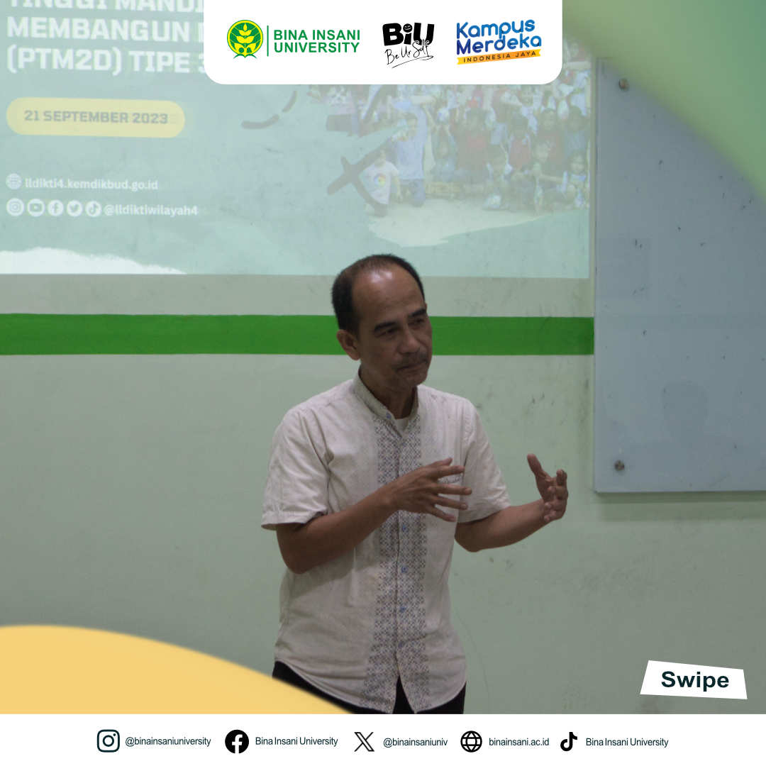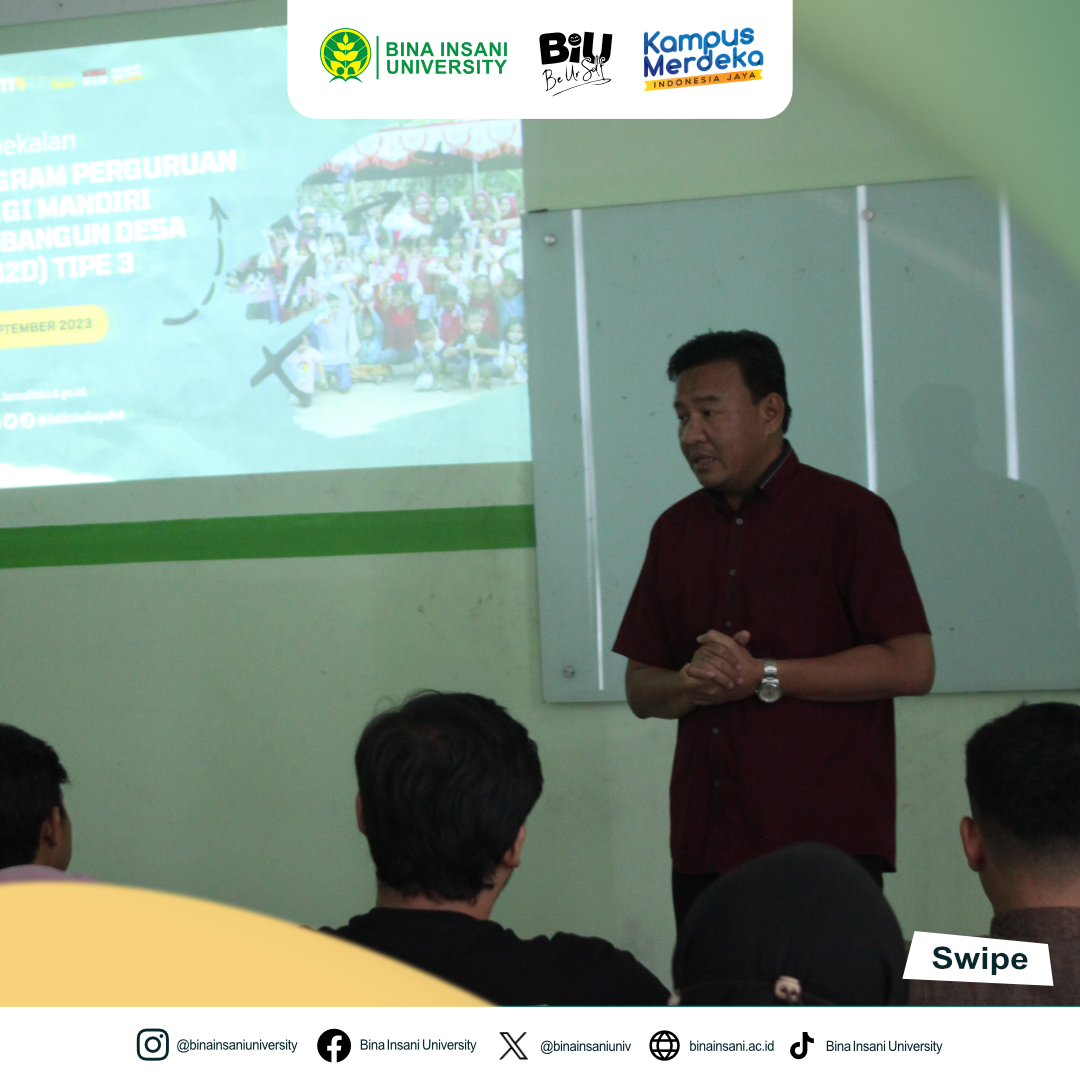 Pada hari Jumat, 22 September 2023 atau tepatnya pada hari ini, Universitas Bina Insani melakukan pembekalan bagi mahasiswanya untuk mengikuti program “Perguruan Tinggi Membangun Desa” sebuah program yang bertujuan untuk menciptakan perubahan positif dan akan dilaksanakan di Sumedang, Jawa Barat.