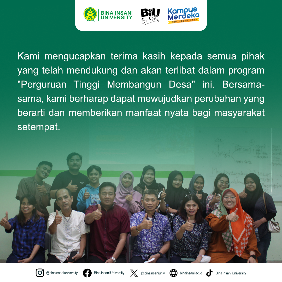 Kami mengucapkan terima kasih kepada semua pihak yang telah mendukung dan akan terlibat dalam program “Perguruan Tinggi Membangun Desa” ini. Bersama-sama, kami berharap dapat mewujudkan perubahan yang berarti dan memberikan manfaat nyata bagi masyarakat setempat.