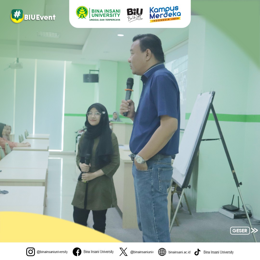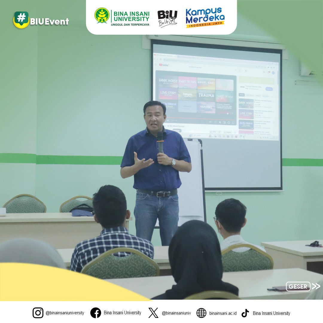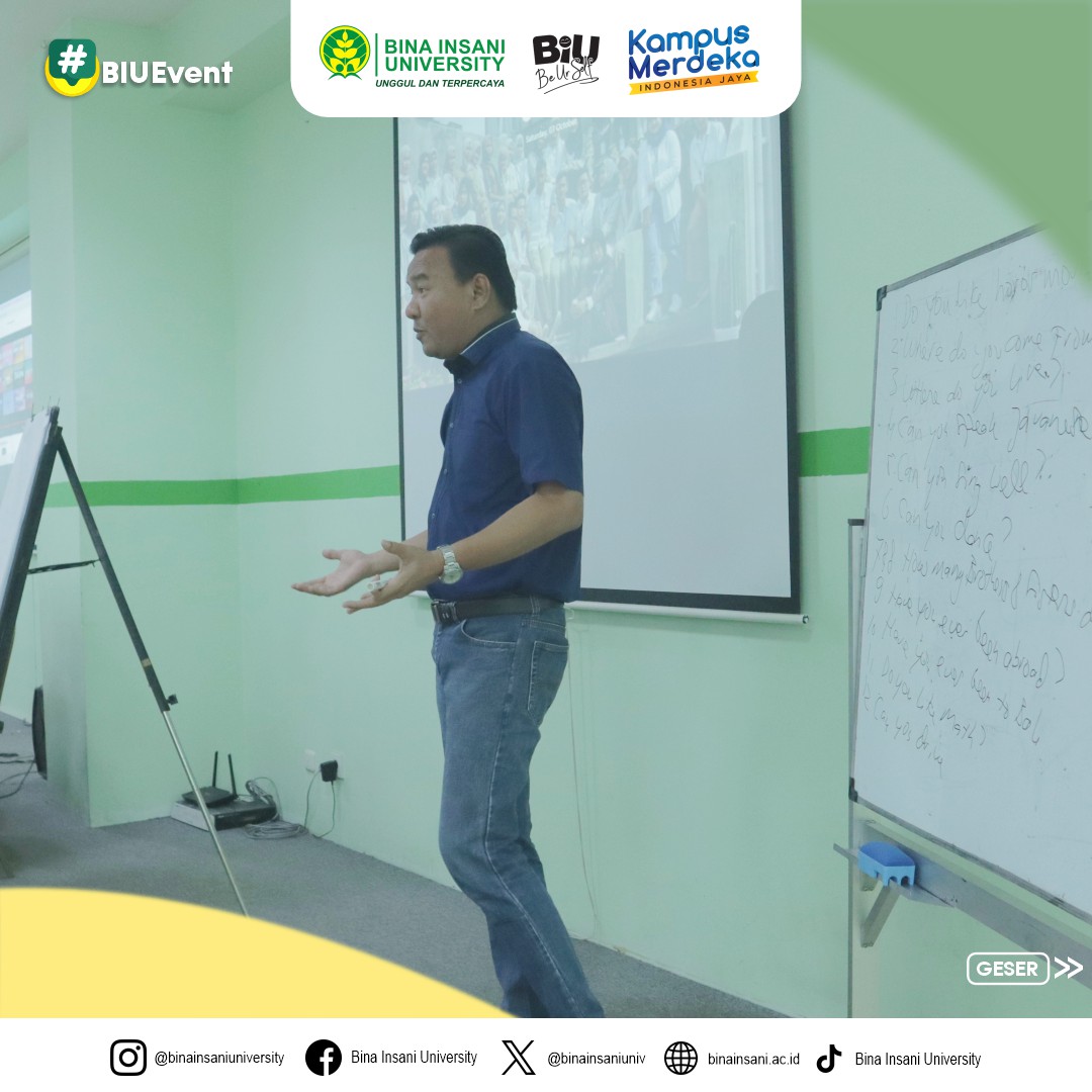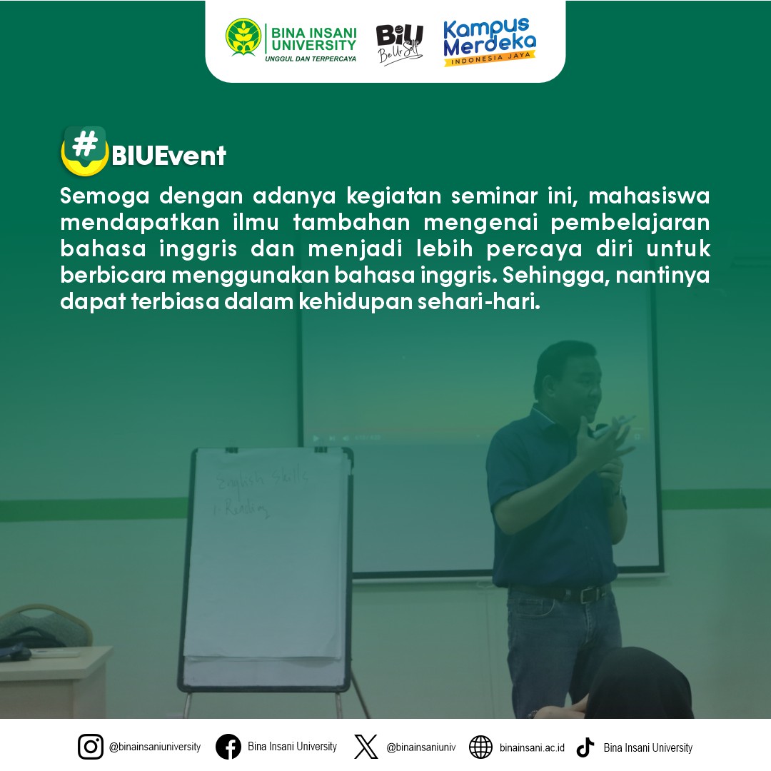 MinBi mau share dokumentasi kegiatan Seminar Believe: “Cara cepat belajar Bahasa Inggris secara otodidak” yang diselenggarakan oleh @ukmbelieve di Ruang Seminar lt.2 Universitas Bina Insani pada hari ini! Pembicara untuk kegiatan hari ini adalah Rektor Universitas Bina Insani sendiri yaitu Bapak Assoc. Prof. Dr. Indra Muis, S.S., M.M. 🙌🏻