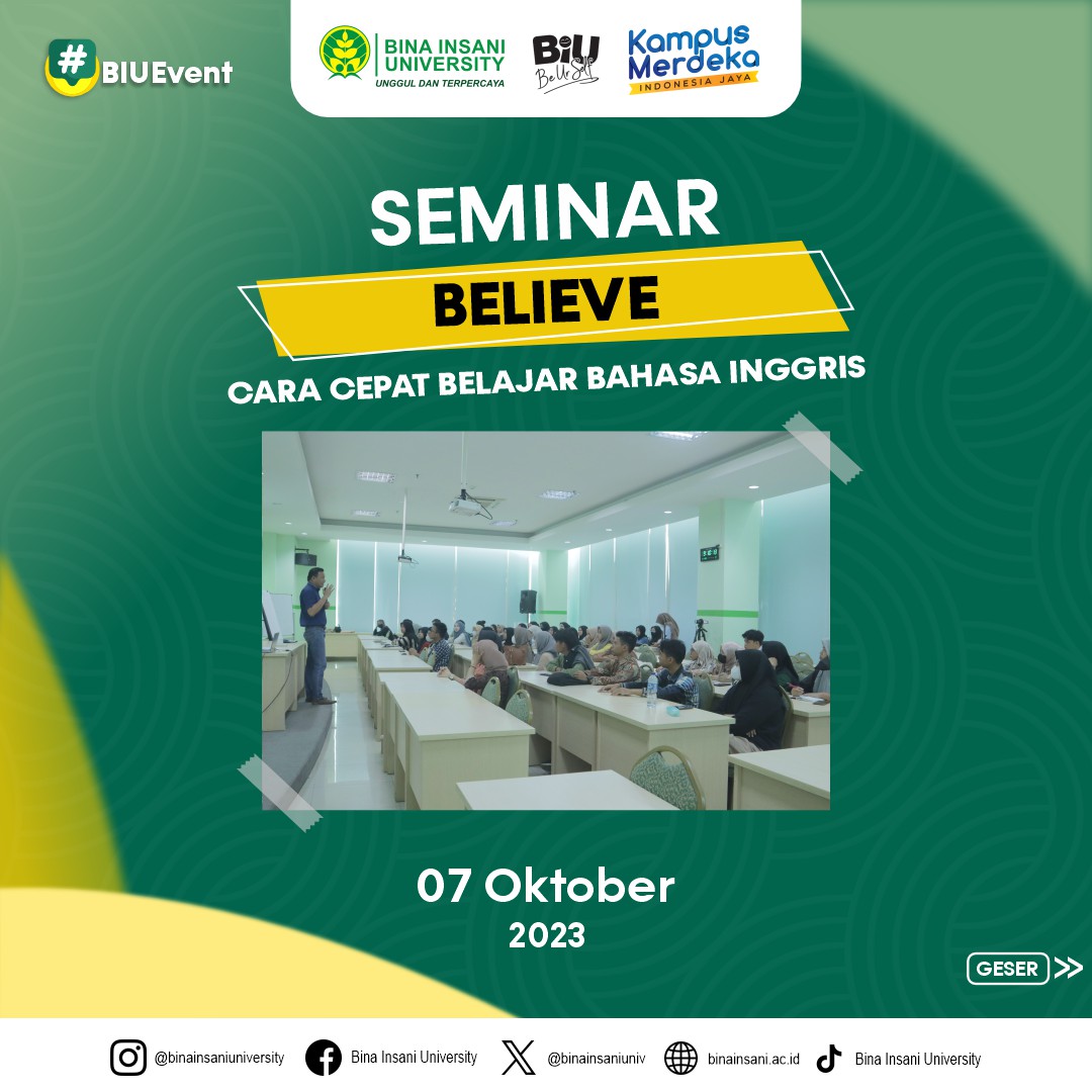 #SeminarBelieve #UKMBelieve #BIUEvent #SeminarBahasaInggris