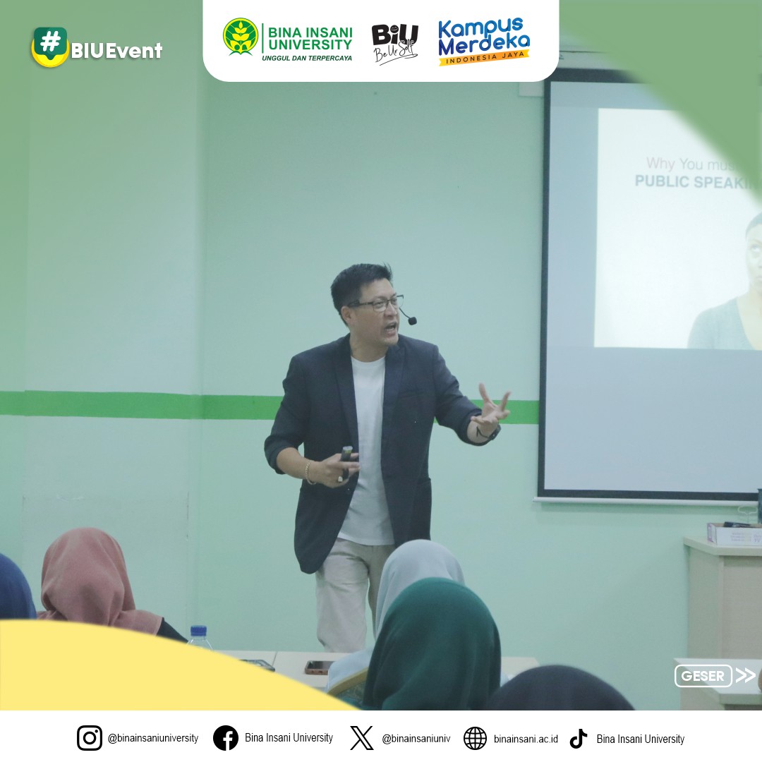 Hari ini telah dilaksanakan kegiatan seminar Public Speaking “Powerful Presentation: Kuasai teknik pesentasi yang menarik untuk mendukung perkembangan karir Anda” oleh Kak David SH., S.DS., CT.NLP., CM.PPS., C.HI., CT.SA dari Arthaloka Talenta di Universitas Bina Insani lho! Yuk, geser slide untuk lihat dokumentasinya ya ๐๐๐ป
