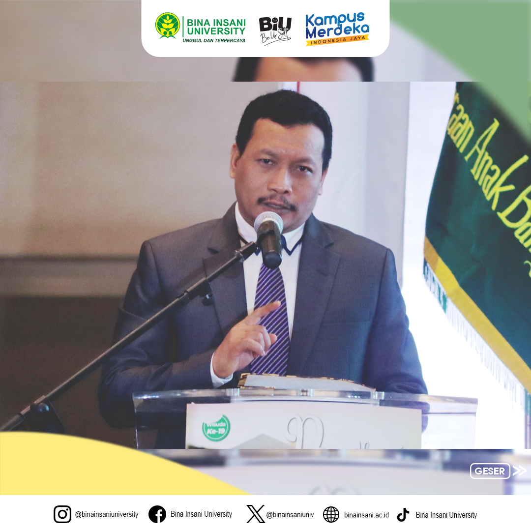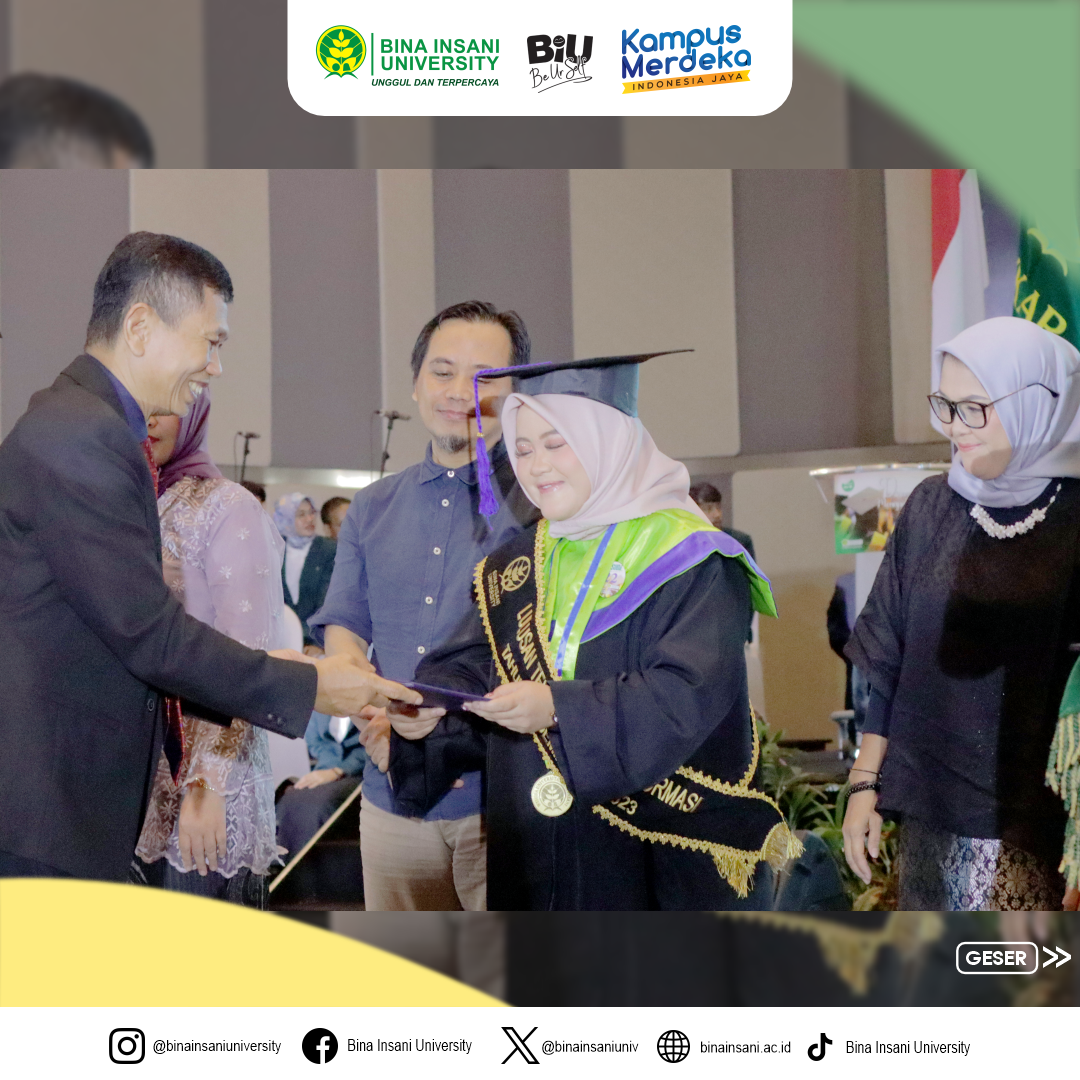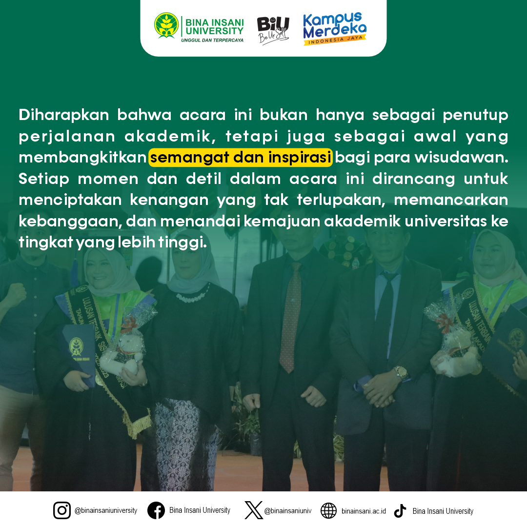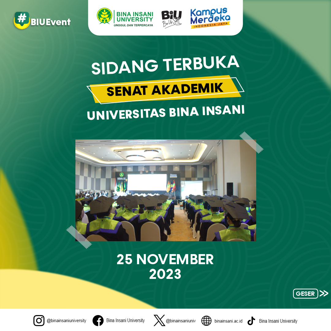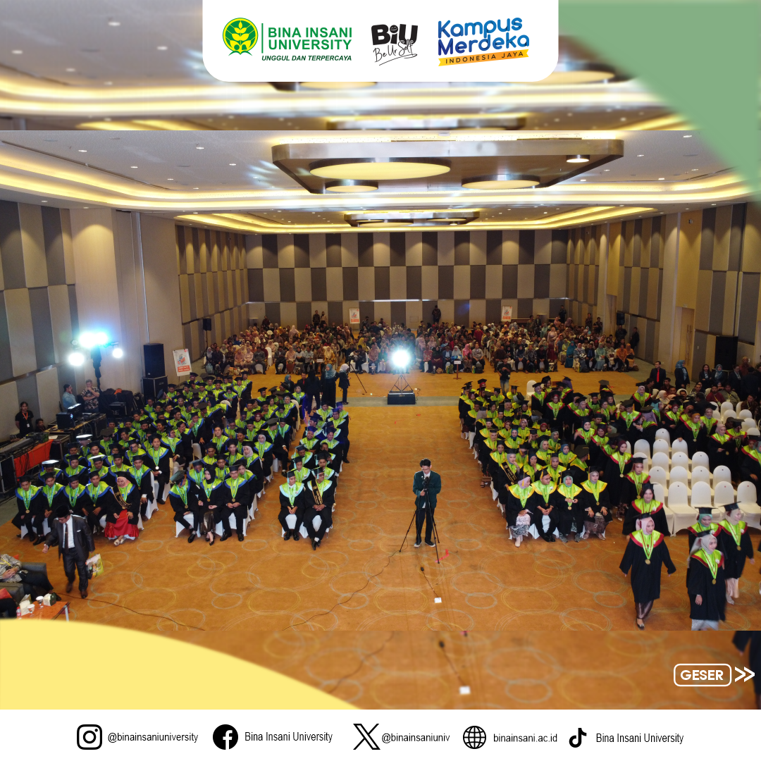 Telah dilaksanakannya Prosesi Sidang Terbuka Senat Akademik Universitas Bina Insani, yakni Wisuda ke-19 dengan tema “Dian Aksara Menapak Aram” untuk jenjang Sarjana dan Diploma Tiga pada Sabtu, 25 November 2023, di Harris Hotel, Bekasi.