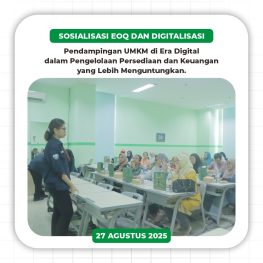 Jl. Siliwangi No. 6 Sepanjang Jaya, Kec. Rawa Lumbu, Kota Bekasi 17114 View mapBekasi, 27 Agustus 2025 – Telah dilaksanakan kegiatan Sosialisasi EOQ dan Digitalisasi dengan tema “Pendampingan UMKM di Era Digital dalam Pengelolaan Persediaan dan Keuangan yang Lebih Menguntungkan.”