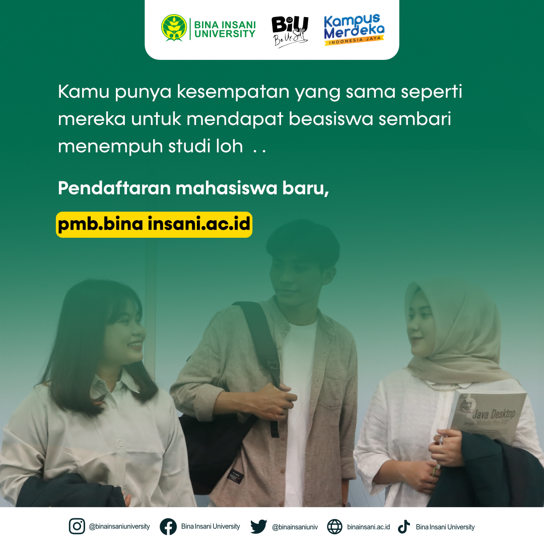 Telah dilakukan sosialisasi dan penyerahan Beasiswa Pemerintah Kota Bekasi pada Selasa, 4 Juli 2023 kemarin. Sosialisasi dan Penyerahan Beasiswa ini dilakukan di Ruang seminar Universitas Bina Insani dan dihadiri oleh beberapa mahasiswa yang mendapatkan beasiswa tersebut. Dengan telah diserahkan beasiswa ini, semoga bermanfaat dan dapat membantu meringankan beban biaya uang kuliah bagi para mahasiswa sembari menempuh studi di Universitas Bina Insani.