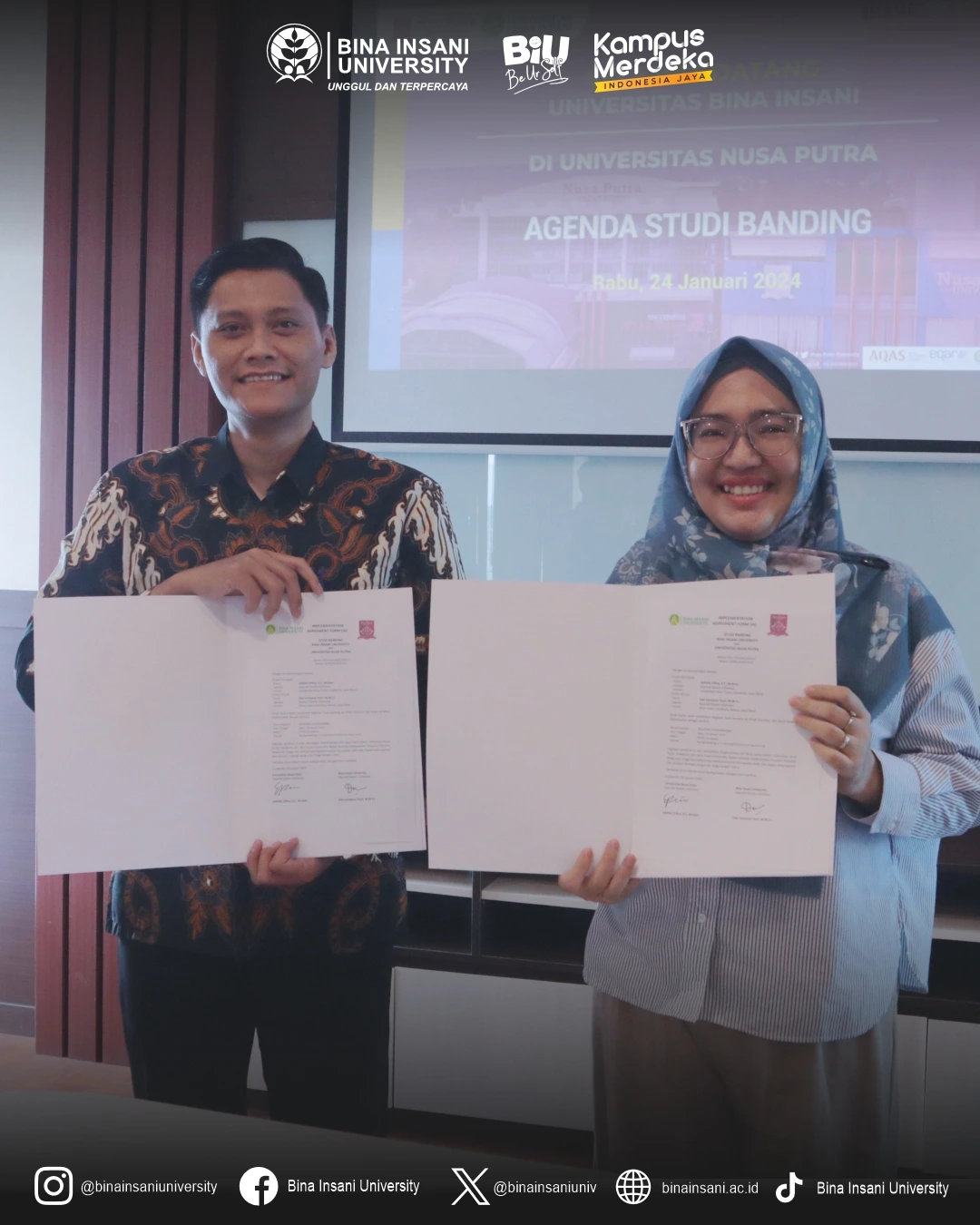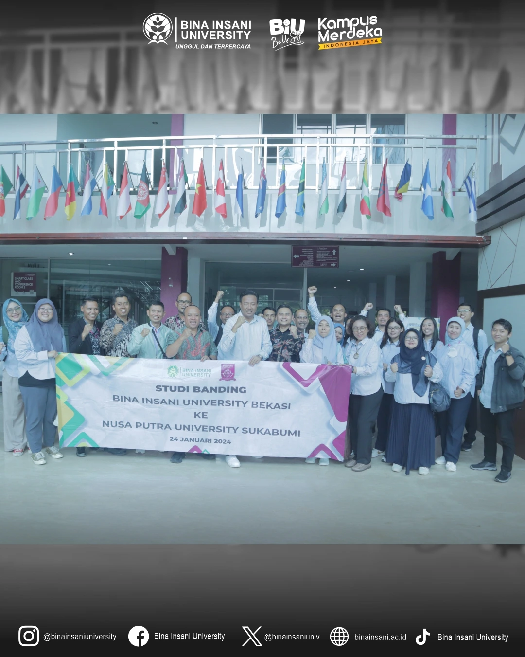 SUKABUMI, 24 Januari 2024 – Bina Insani University dengan bangga mengumumkan kelancaran Program Studi Banding Internasional ke Nusa Putra University, Sukabumi, Jawa Barat, yang berlangsung pada hari Rabu, 24 Januari 2024.