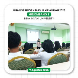 Bekasi, 9 Agustus 2025 – Universitas Bina Insani telah menyelenggarakan Ujian Saringan Masuk KIP-Kuliah 2025 Gelombang 3 pada hari Sabtu, 9 Agustus 2025.