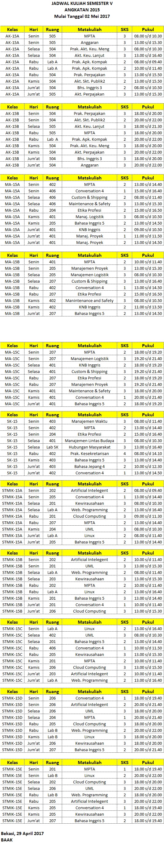 Perubahan Jadwal Semester V Angk. 2015 TA 2016/2017 By Widiana | 29/04/2017 | Akademik / Pendidikan | 0 Comments |